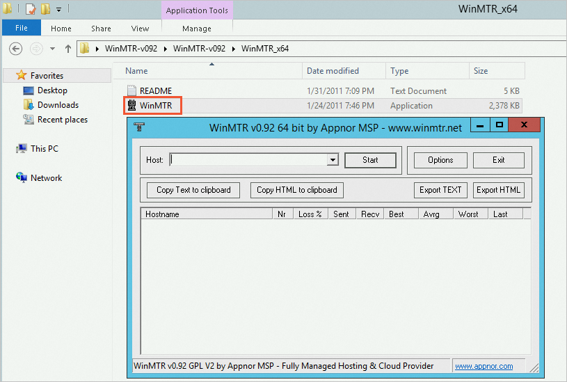 下载WinMTR后无需安装,直接解压运行即可,操作方法非常简单,操作步骤如下。